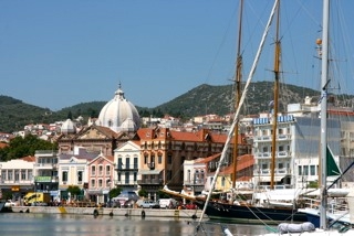 C’est peu dire que nous n’avons pas du tout accroché avec Mytilène-ville. Pourtant, on ne peut pas nier qu’elle abrite de bien jolies maisons néoclassiques, une belle lumière quand tombe le jour, un port plein de vie, de remarquables mosaïques au nouveau musée archéologique, mais non, rien à faire, cette cité de 30 000 habitants est horripilante : trop grande, excessivement bruyante, mal pensée, pas pratique, brouillonne, décousue. En voiture, c’est un cauchemar, à pied, une purge ! Des voitures dans tous les sens, des scooters téméraires, voire inconséquents, des taxis psychopathes qui ignorent tout du code de la route, cette ville est le règne des dangereux sans-gêne sur roues. Impossible de flâner, de prendre son temps, de lever le museau, le tintamarre des klaxons vous accompagne partout. Seule solution, sortir de la ville jusqu’au kastro et l’ancien port, pour respirer un peu et mettre ses tympans au repos.